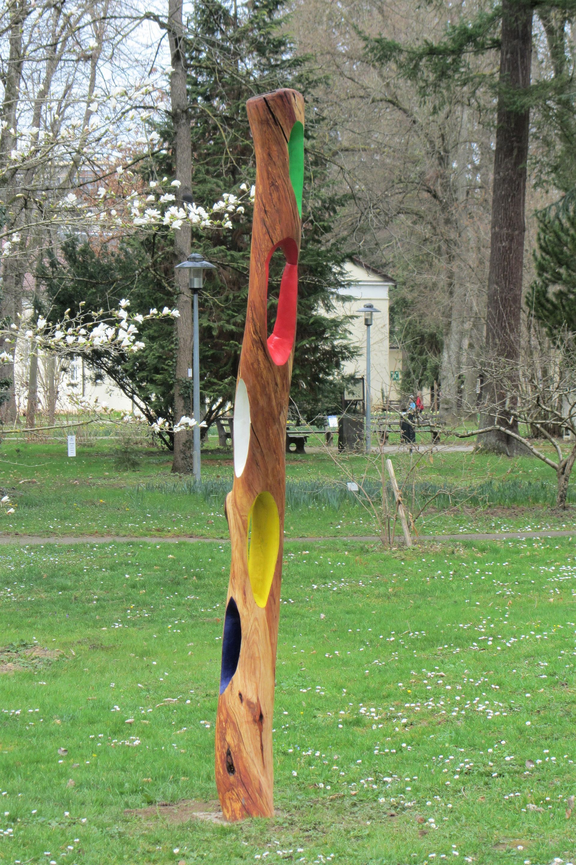 Erfahrung, 2019, Kiefernholz, Farbe, 80 x 30 x 25 cm